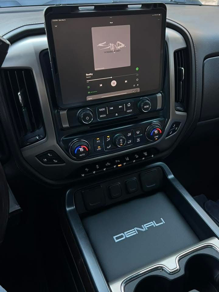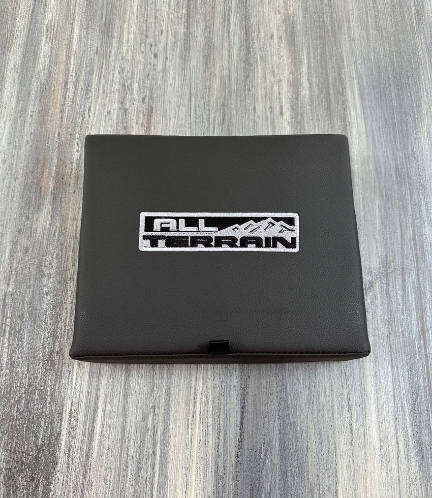 As shown in photos, we have a limited production run of these center console covers made for us here at John C Garage. They will work in any 2015-2019 Silverado/Sierra with captains chairs and center console. It's pretty self-explanatory, but this will cover up the hole in the center console leaving you a flat surface to put your personal belongings. There is a small pull tab stitched on to lift the cover and gain access to anything underneath.